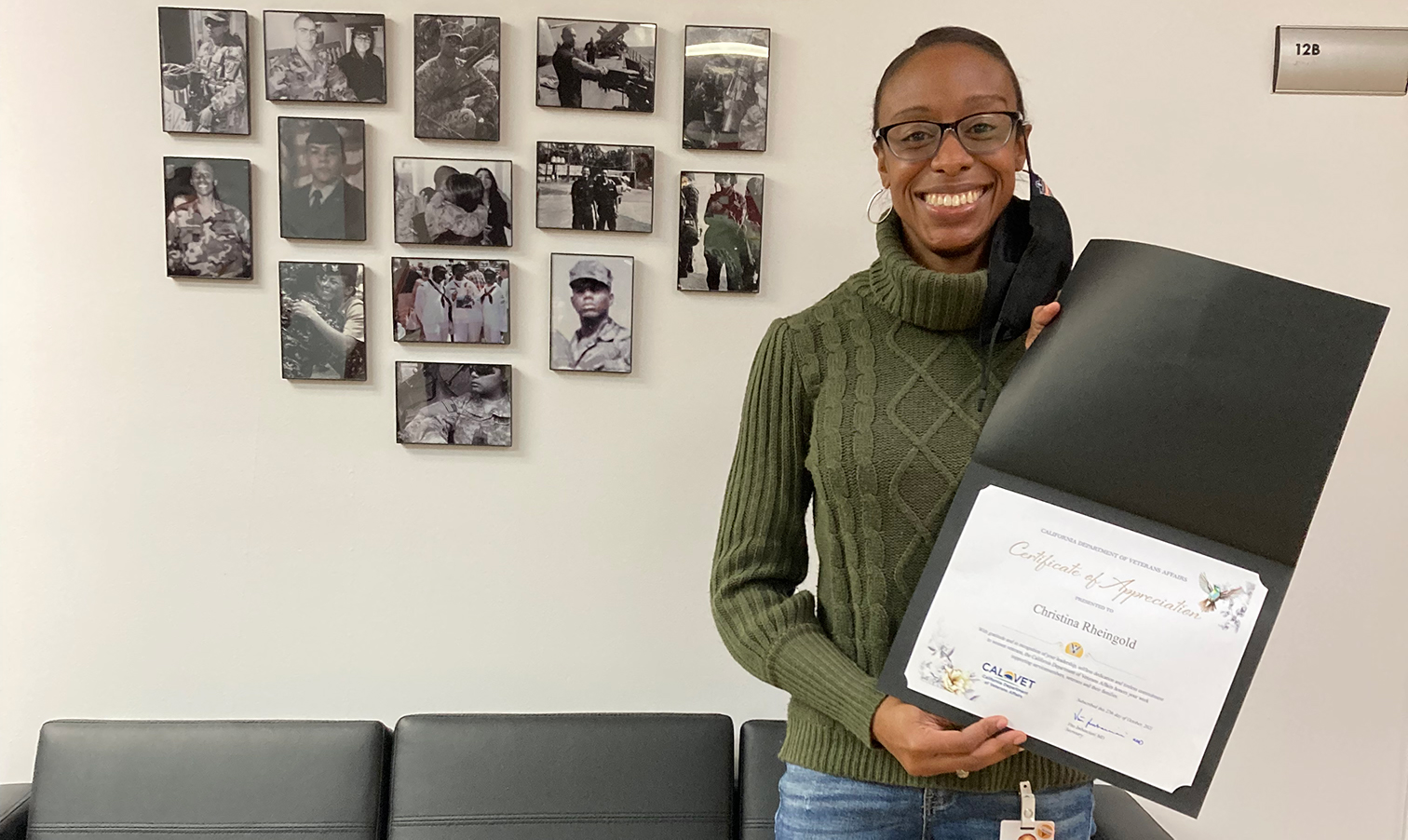 Upon hearing the news, Christina shared, “I am honored to be recognized by CalVets and to be among the many others in the community that helps and supports Veterans and their families get the services they deserve.”